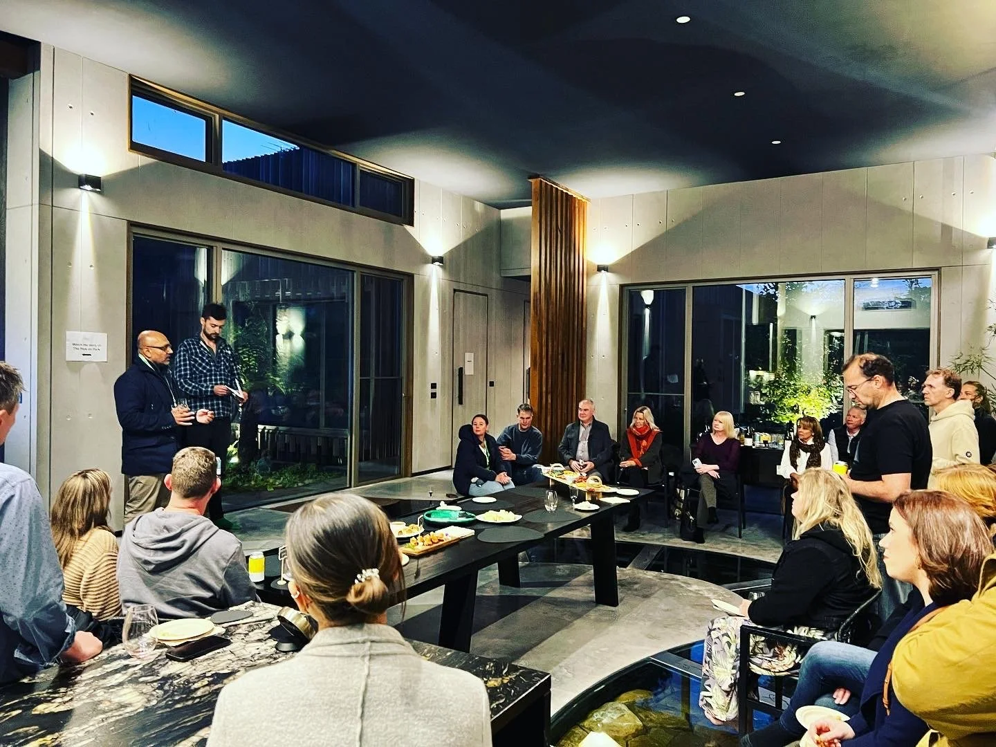 Garden creator/owner Praty Patel and landscaper Shaun Laurie hosted the sunset in the garden event with Open Gardens Victoria. With wine, beer, and canapes, participants enjoyed a twilight presentation and discussion highlighting the use of lighting and water in the garden, and the principles of creating sustainable and unique aquascapes.